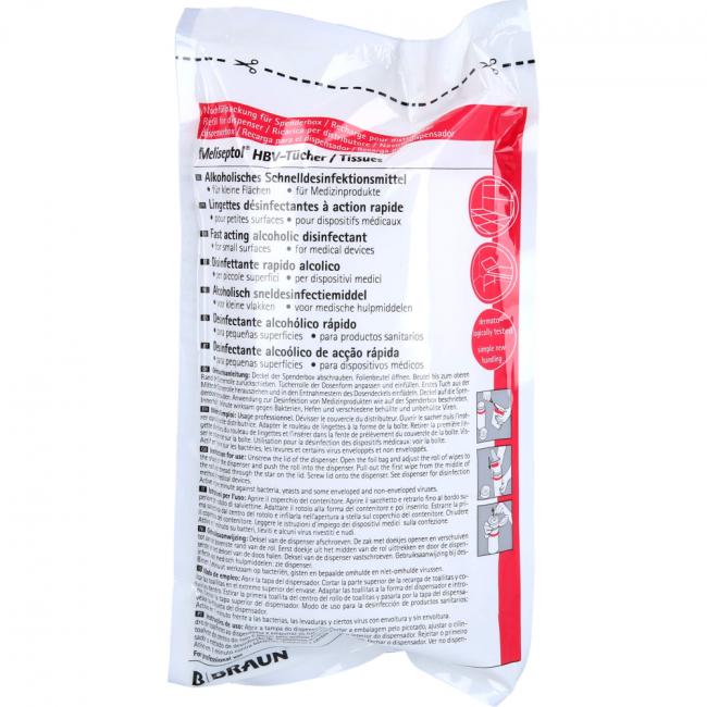 Pflichtangaben MELISEPTOL HBV Tücher Nachfüllpackung, 100 Stück