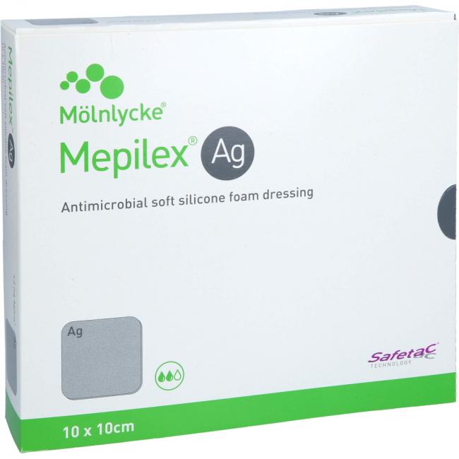 Mepilex Ag ist für die Versorgung von leicht bis mittelstark infizierten Wunden oder Wunden mit Infektionsrisiko geeignet, wie z.B. Bein- und Fußgeschwüre, Druckgeschwüre und partielle Verbrennungen. Mepilex Ag kann auch unter Kompressionsverbänden verwendet werden.