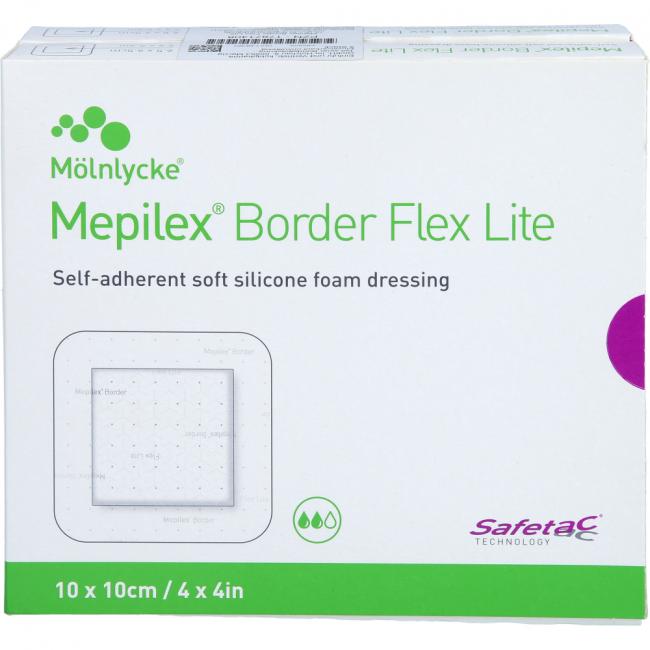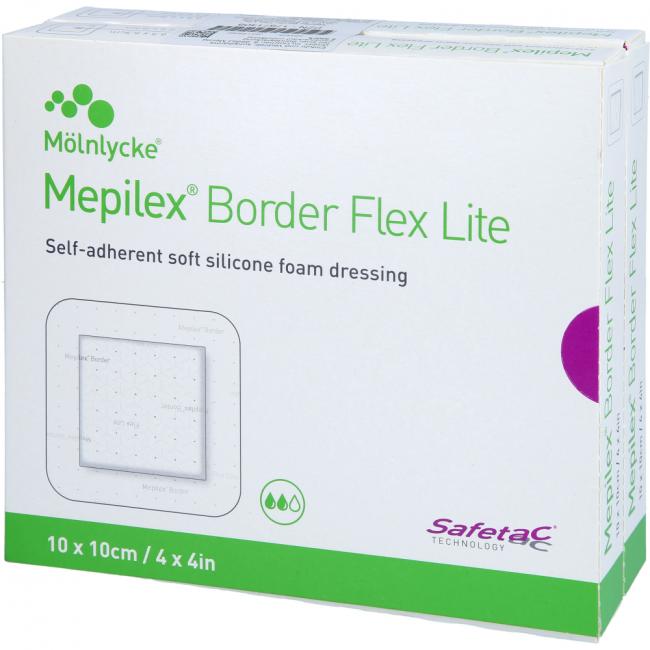 Mepilex Border Flex Lite ist für die Behandlung eines breiten Spektrums wenig bis mäßig exsudierender Wunden, wie z.B. diabetisches Fußulcus, Ulcus cruris, Dekubitus Bein- und Fußgeschwüre, Druckgeschwüre, chirurgische Wunden und traumatische Wunden, z.B. Abschürfungen, Blasen und Skin Tears, vorgesehen. Mepilex Border Flex Lite kann auch als Schutz für gefährdete und/oder empfindliche Haut verwendet werden.