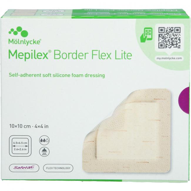 Mepilex Border Flex Lite ist für die Behandlung eines breiten Spektrums wenig bis mäßig exsudierender Wunden, wie z.B. diabetisches Fußulcus, Ulcus cruris, Dekubitus Bein- und Fußgeschwüre, Druckgeschwüre, chirurgische Wunden und traumatische Wunden, z.B. Abschürfungen, Blasen und Skin Tears, vorgesehen. Mepilex Border Flex Lite kann auch als Schutz für gefährdete und/oder empfindliche Haut verwendet werden.