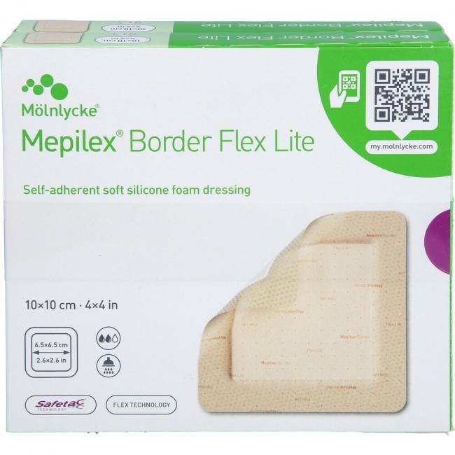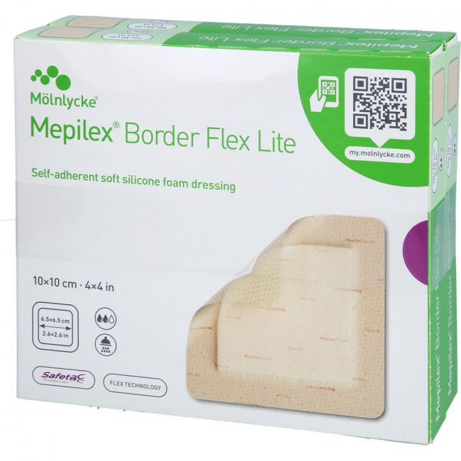 Mepilex Border Flex Lite ist für die Behandlung eines breiten Spektrums wenig bis mäßig exsudierender Wunden, wie z.B. diabetisches Fußulcus, Ulcus cruris, Dekubitus Bein- und Fußgeschwüre, Druckgeschwüre, chirurgische Wunden und traumatische Wunden, z.B. Abschürfungen, Blasen und Skin Tears, vorgesehen. Mepilex Border Flex Lite kann auch als Schutz für gefährdete und/oder empfindliche Haut verwendet werden.