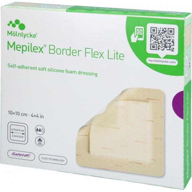 Mepilex Border Flex Lite ist für die Behandlung eines breiten Spektrums wenig bis mäßig exsudierender Wunden, wie z.B. diabetisches Fußulcus, Ulcus cruris, Dekubitus Bein- und Fußgeschwüre, Druckgeschwüre, chirurgische Wunden und traumatische Wunden, z.B. Abschürfungen, Blasen und Skin Tears, vorgesehen. Mepilex Border Flex Lite kann auch als Schutz für gefährdete und/oder empfindliche Haut verwendet werden.
