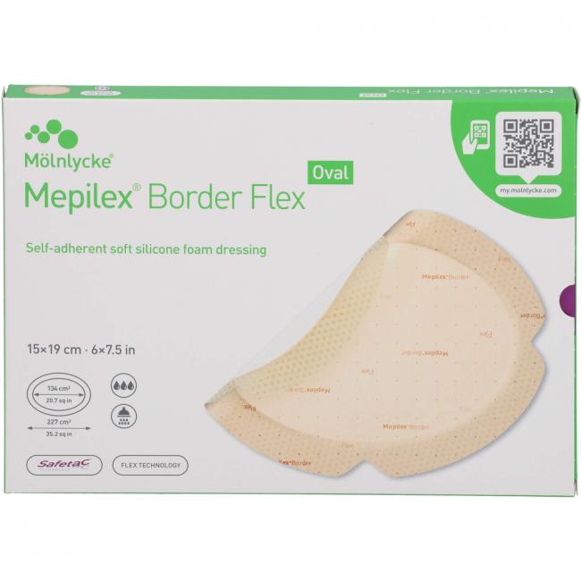Pflichtangaben MEPILEX Border Flex Schaumverb.haft.15x19 cm oval, 5 Stück