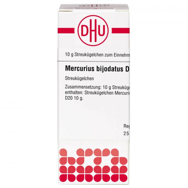 Mercurius bijodatus D 20. Anwendungsgebiete: Registriertes homöopathisches Arzneimittel, daher ohne Angabe einer therapeutischen Indikation. Warnhinweis: Dieses Arzneimittel enthält Sucrose (Saccharose / Zucker).