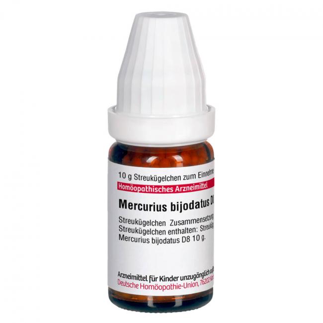Mercurius bijodatus D 8. Anwendungsgebiete: Registriertes homöopathisches Arzneimittel, daher ohne Angabe einer therapeutischen Indikation. Warnhinweis: Dieses Arzneimittel enthält Sucrose (Saccharose / Zucker).