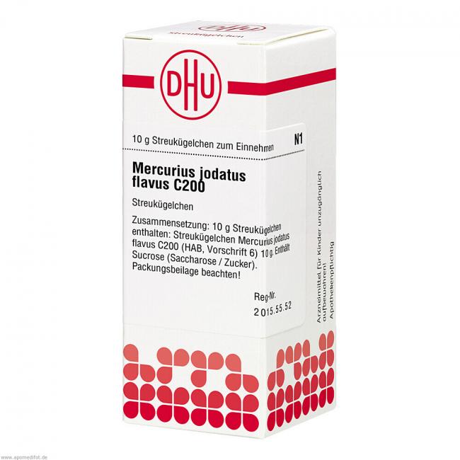 Mercurius Jodatus Flavus C 200. Anwendungsgebiete: Registriertes homöopathisches Arzneimittel, daher ohne Angabe einer therapeutischen Indikation. Warnhinweis: Dieses Arzneimittel enthält Sucrose (Saccharose / Zucker).