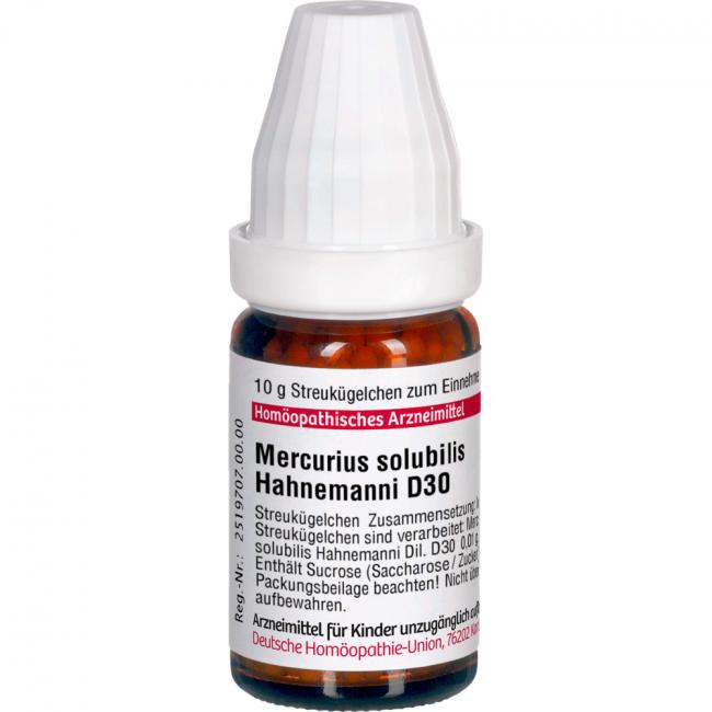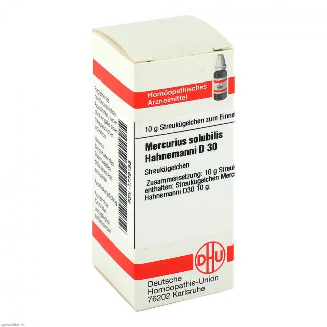 Mercurius Solubilis Hahnemanni D 30. Anwendungsgebiete: Registriertes homöopathisches Arzneimittel, daher ohne Angabe einer therapeutischen Indikation. Warnhinweis: Dieses Arzneimittel enthält Sucrose (Saccharose / Zucker).