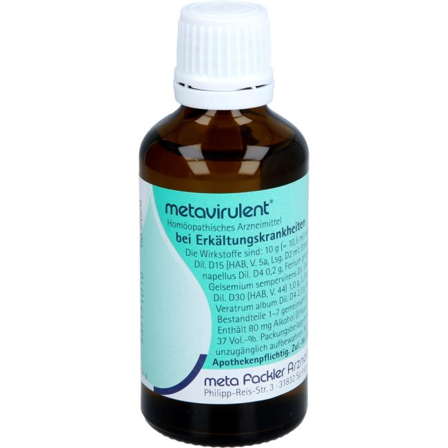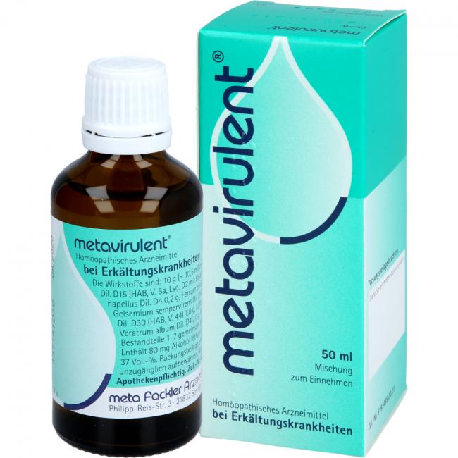 metavirulent Mischung. Die Anwendungsgebiete leiten sich von den homöopathischen Arzneimittelbildern ab. Dazu gehören: grippale Infekte. Warnhinweis: Enthält 37 Vol.-% Alkohol.