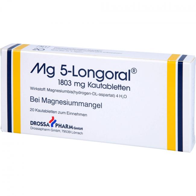 Mg 5-Longoral ist ein Mineralstoffpräparat. Mg 5-Longoral wird angewendet bei nachgewiesenem Magnesiummangel, wenn er Ursache für Störungen der Muskeltätigkeit (neuromuskuläre Störungen) ist.