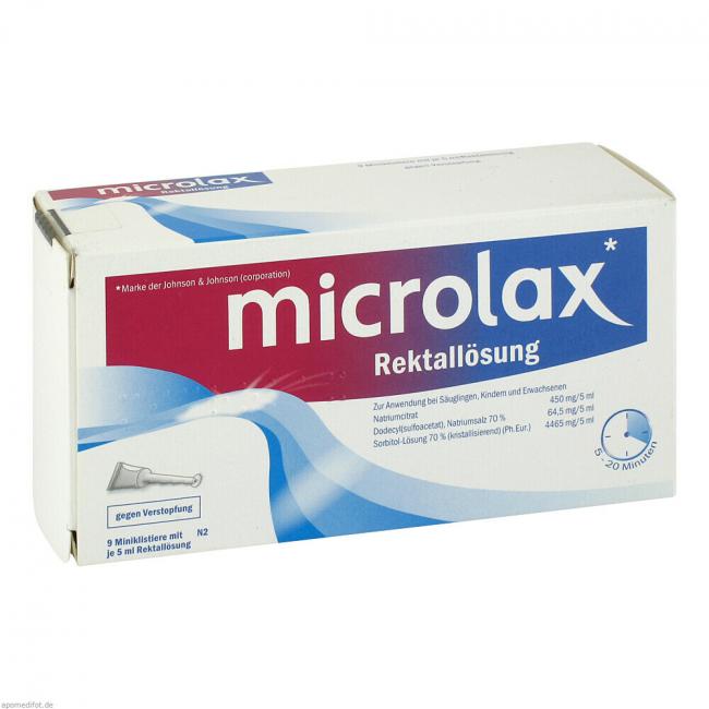 Microlax Rektallösung. Anwendungsgebiete: Zur kurzfristigen Anwendung bei Verstopfung (Obstipation) sowie bei Erkrankungen, die eine erleichterte Stuhlentleerung (Defäkation) erfordern; zur Darmentleerung bei diagnostischen oder therapeutischen Maßnahmen im Enddarmbereich.Warnhinweis. Microlax enthält Sorbinsäure.