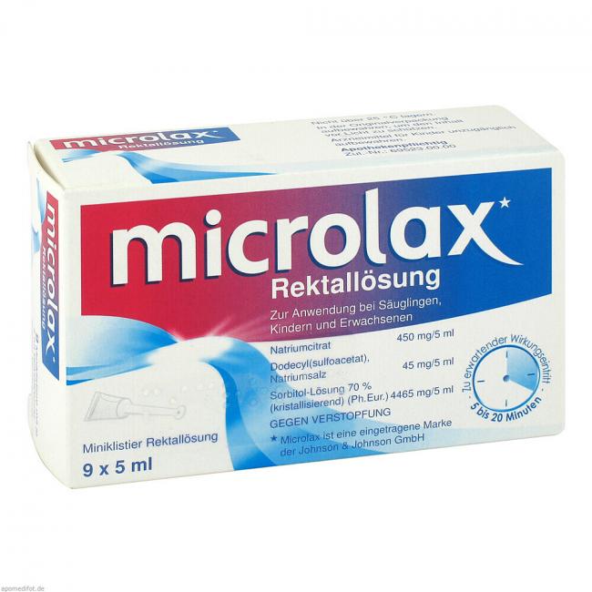 Microlax Rektallösung. Anwendungsgebiete: Zur kurzfristigen Anwendung bei Verstopfung (Obstipation) sowie bei Erkrankungen, die eine erleichterte Stuhlentleerung (Defäkation) erfordern; zur Darmentleerung bei diagnostischen oder therapeutischen Maßnahmen im Enddarmbereich.Warnhinweis. Microlax enthält Sorbinsäure.