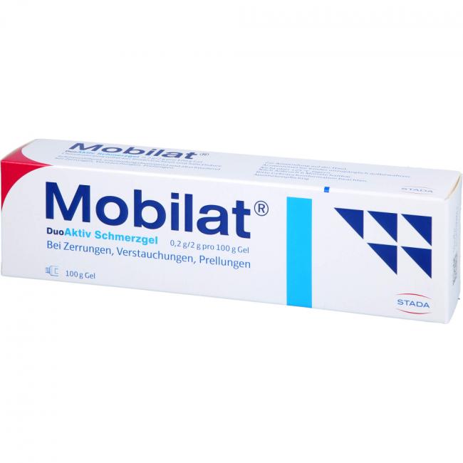 Mobilat DuoAktiv Schmerzgel enthält eine Kombination von zwei Wirkstoffen, die, äußerlich angewendet, bei stumpfen Verletzungen wirksam sind. Mobilat DuoAktiv Schmerzgel wird angewendet zur unterstützenden lokalen Behandlung von schmerzhaften stumpfen Traumen wie Zerrungen, Verstauchungen oder Prellungen, z.B. bei Sportverletzungen. Bei Beschwerden, die länger als 3 Tage anhalten, sollte ein Arzt aufgesucht werden.