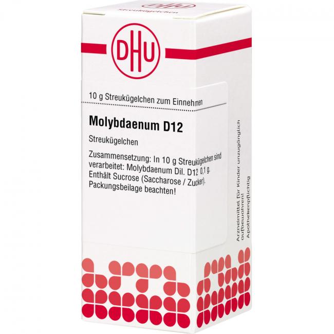 MOLYBDAENUM D 12 Globuli. Anwendungsgebiete: Anwendungsgebiete: Registriertes homöopathisches Arzneimittel, daher ohne Angabe einer therapeutischen Indikation. Warnhinweis: Dieses Arzneimittel enthält Sucrose (Saccharose / Zucker).