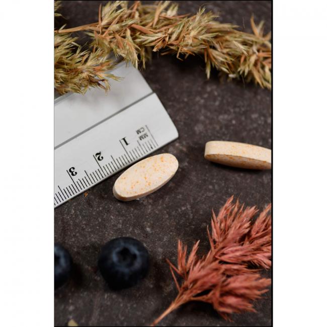 1 Tablette täglich mit einer Mahlzeit oder einem Glas Wasser einnehmen.