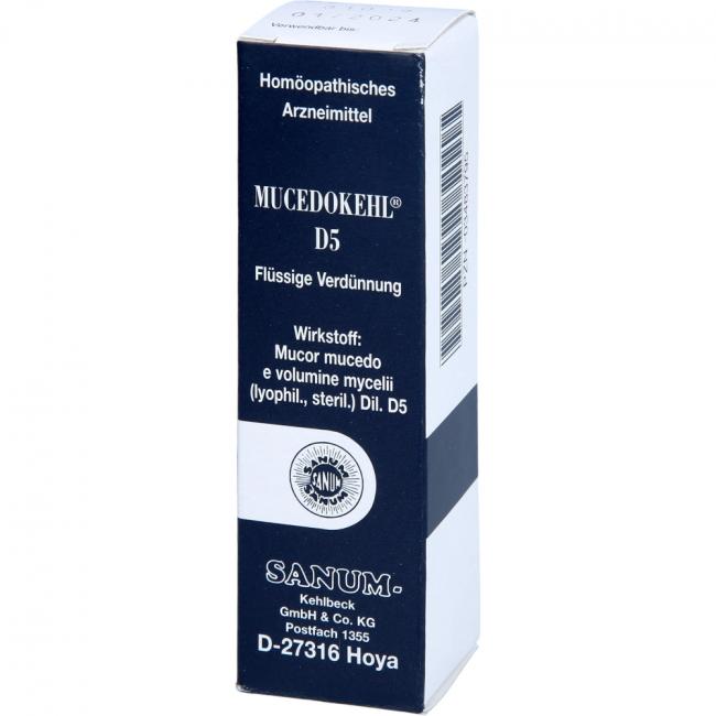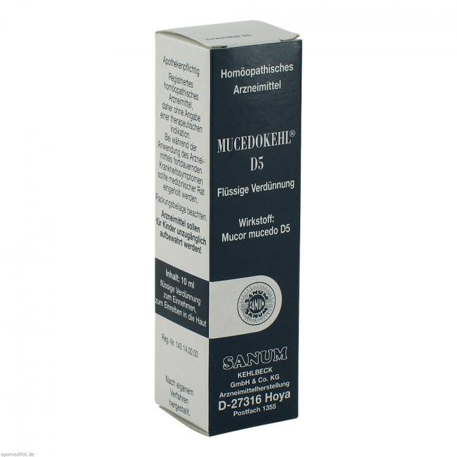 Mucedokehl D5 Flüssige Verdünnung. Wirkstoff: Mucor mucedo D5. Anwendungsgebiete: Registriertes homöopathisches Arzneimittel, daher ohne Angabe einer therapeutischen Indikation.