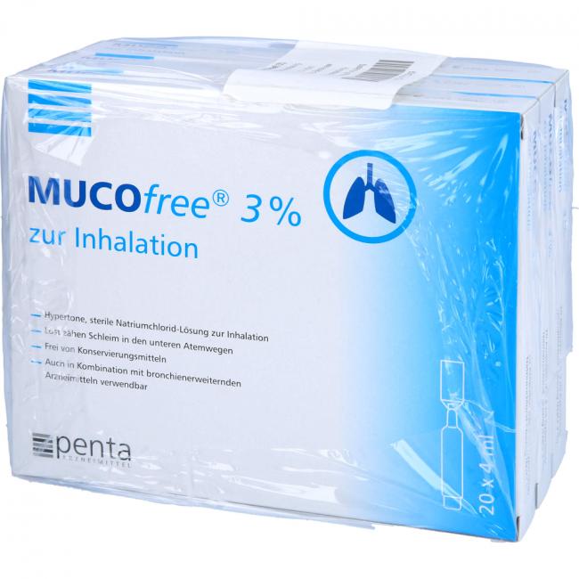- 3%ige Natriumchlorid-Lösung (MUCOfree 3%) geeignet als Trägerlösung für bronchienerweiternde Arzneimittel (z.B. Salbutamolsulfat, sofern das Arzneimittel gemäß Fachinformation für die Verdünnung mit hypertoner Kochsalzlösung zugelassen ist).