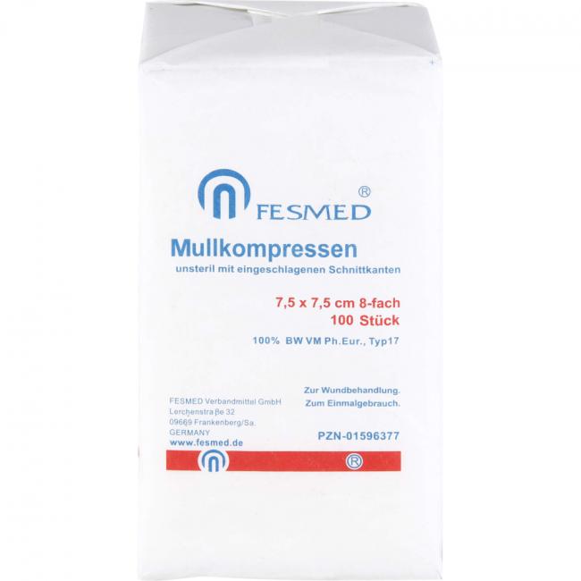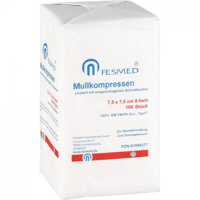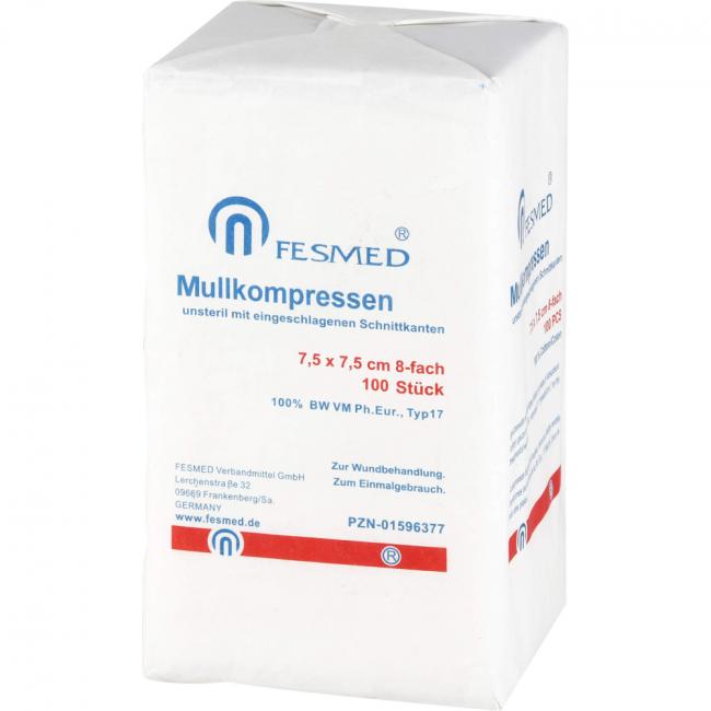 Produktinformationen MULLKOMPRESSEN 7,5x7,5 cm unsteril 8fach Papier, 100 Stück