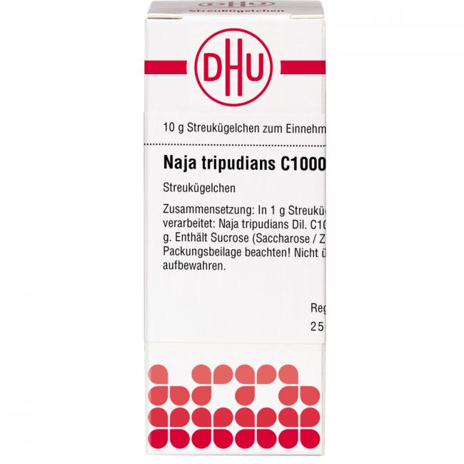 Naja Tripudians C 1000. Anwendungsgebiete: Registriertes homöopathisches Arzneimittel, daher ohne Angabe einer therapeutischen Indikation. Warnhinweis: Dieses Arzneimittel enthält Sucrose (Saccharose / Zucker).