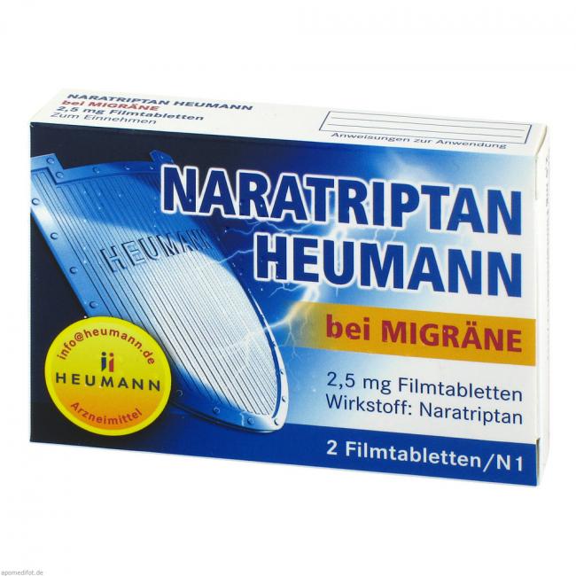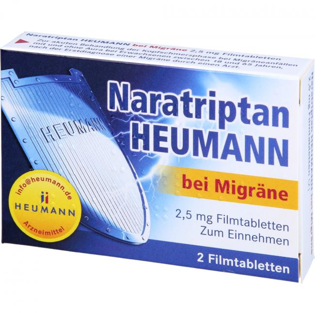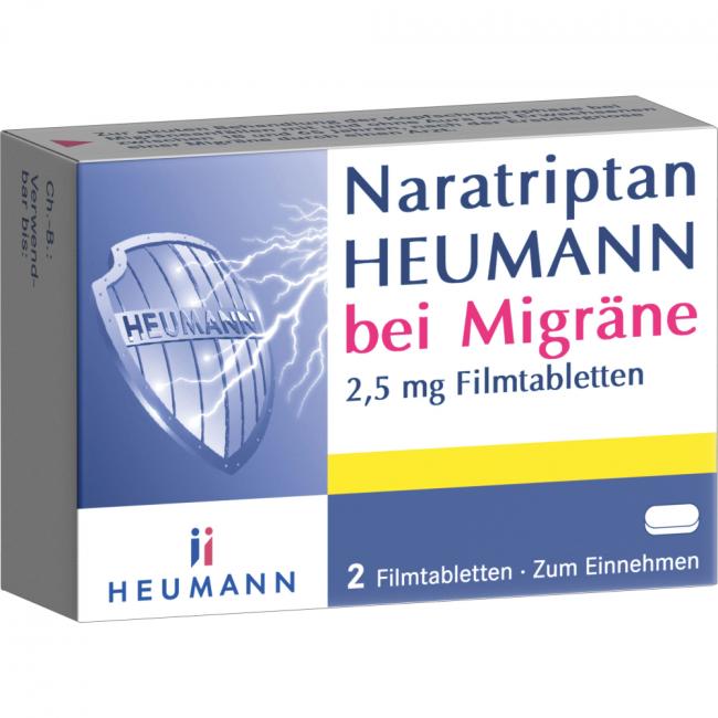 Pflichtangaben NARATRIPTAN Heumann bei Migräne 2,5 mg Filmtabl., 2 Stück