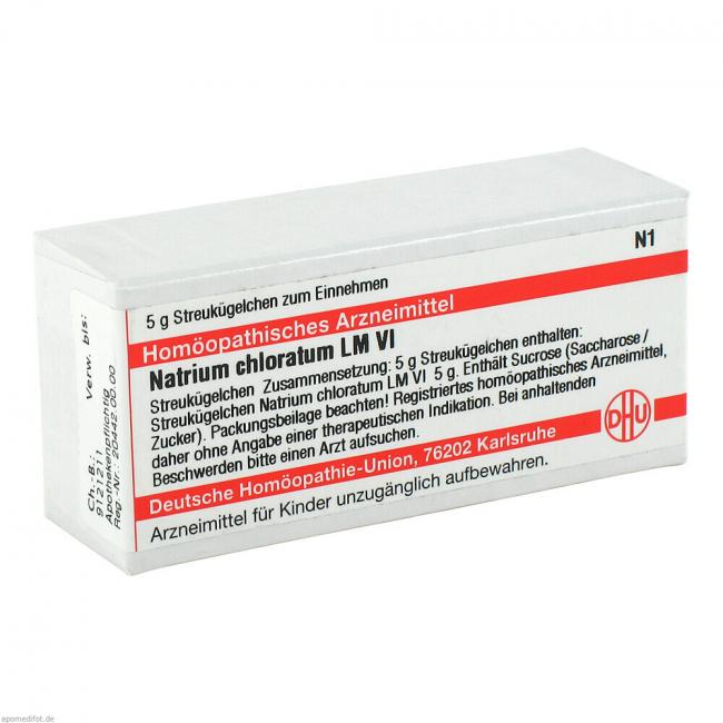 LM Natrium Chloratum VI. Anwendungsgebiete: Registriertes homöopathisches Arzneimittel, daher ohne Angabe einer therapeutischen Indikation. Warnhinweis: Dieses Arzneimittel enthält Sucrose (Saccharose / Zucker).