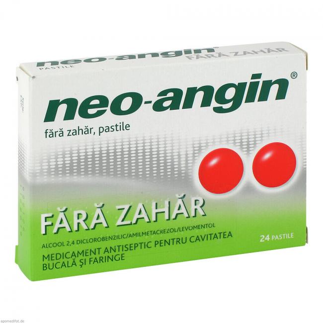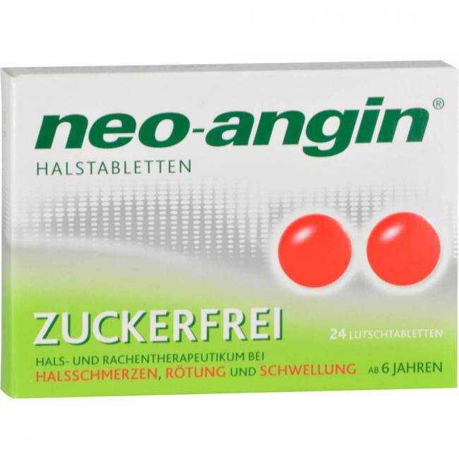 neoangin Halstabletten zuckerfrei. Wirkstoffe: 2,4-Dichlorbenzylalkohol, Amylmetacresol, Levomenthol. Anwendungsgebiete: Zur unterstützenden Behandlung bei Entzündungen der Rachenschleimhaut, die mit typischen Symptomen wie Halsschmerzen, Rötung oder Schwellung einhergehen. Warnhinweis: Enthält Isomalt.