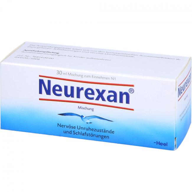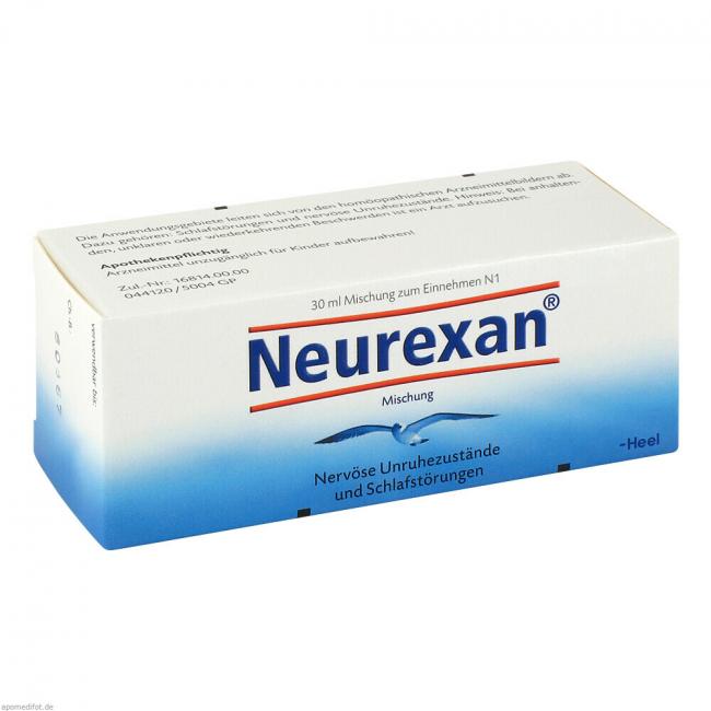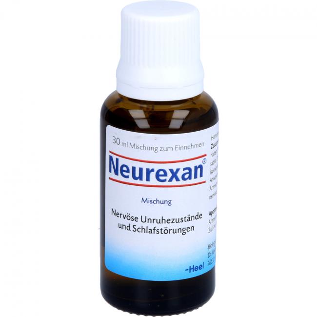 Neurexan Mischung. Anwendungsgebiete: Die Anwendungsgebiete leiten sich von den homöopathischen Arzneimittelbildern ab. Dazu gehören: Schlafstörungen und nervöse Unruhezustände. Warnhinweis: Enthält 36 Vol.-% Alkohol!