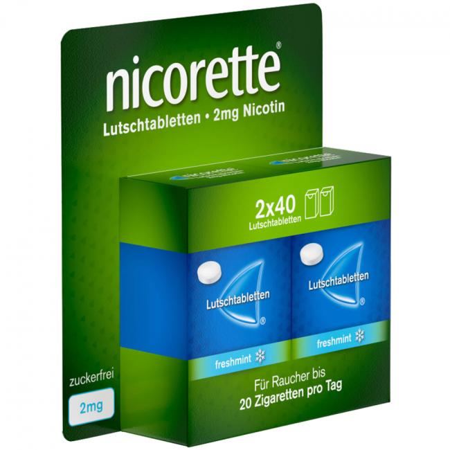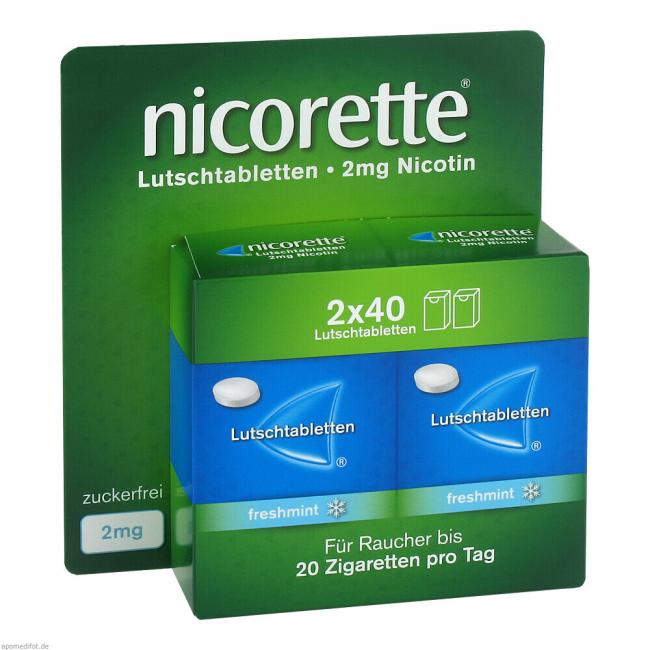 Wirkstoff: Nicotin (als Nicotinresinat). Anwendungsgebiete: Behandlung der Tabakabhängigkeit durch Linderung der Nicotinentzugserscheinungen und Verringerung des Nikotinverlangens für Raucher mit geringer Tabakabhängigkeit ab 18 Jahren. Zum sofortigen Rauchstopp sowie zur Verringerung des Zigarettenkonsums (Rauchreduktion), um auf diesem Wege schrittweise den Rauchausstieg zu erreichen. Warnhinweis: Nicorette Lutschtabletten enthalten Polysorbat.