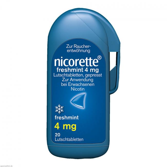 Wirkstoff: Nicotin. Anwendungsgebiete: Behandlung der Tabakabhängigkeit durch Linderung der Nicotinentzugserscheinungen und Verringerung des Nikotinverlangens für Raucher mit starker Tabakabhängigkeit ab 18 Jahren. Zum sofortigen Rauchstopp sowie zur Verringerung des Zigarettenkonsums (Rauchreduktion), um auf diesem Wege schrittweise den Rauchausstieg zu erreichen.Warnhinweis: Nicorette Lutschtabletten enthalten Polysorbat.