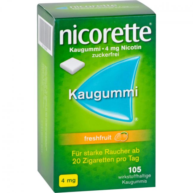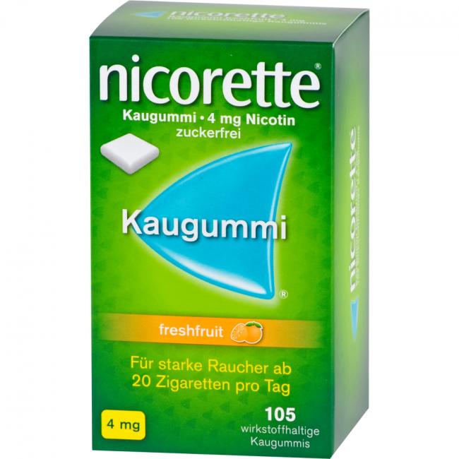 Nicorette Kaugummi 4 mg freshfruit ist ein dragiertes viereckiges wirkstoffhaltiges Kaugummi. Es ist in Packungen mit 30, 105 und 210 wirkstoffhaltigen Kaugummis erhältlich.