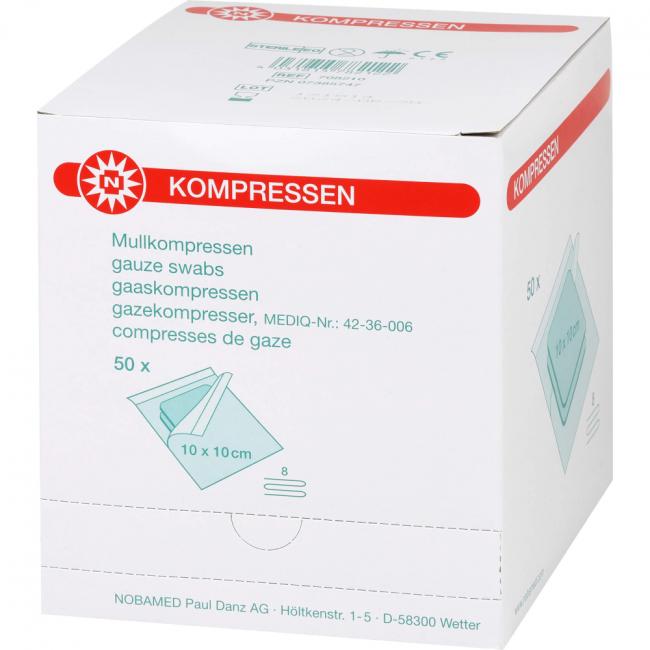Produktinformationen NOBA MULLKOMPRESSEN 10x10 cm steril 8fach, 50x2 Stück