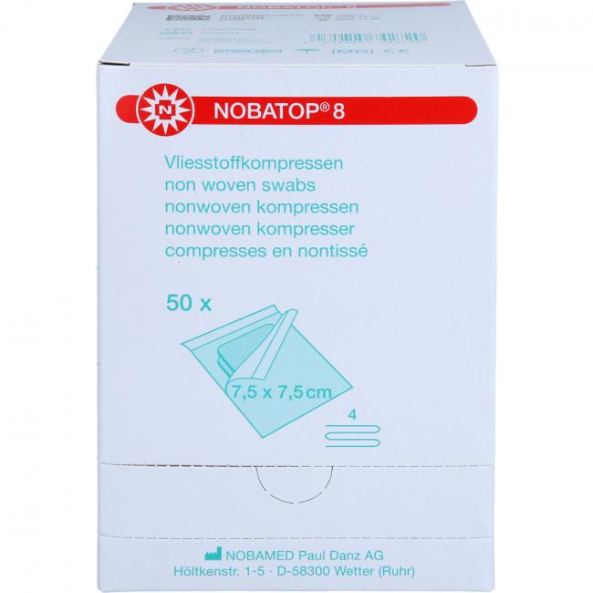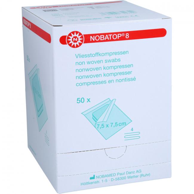 Pflichtangaben NOBATOP 8 Kompressen 7,5x7,5 cm steril, 50x2 Stück