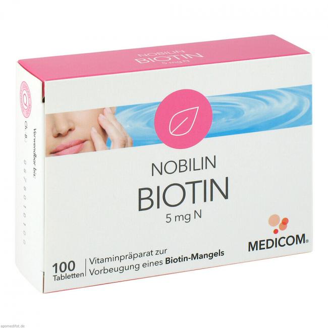NOBILIN BIOTIN 5 mg N. Anwendungsgebiet: Zur Vorbeugung eines Biotin-Mangels.