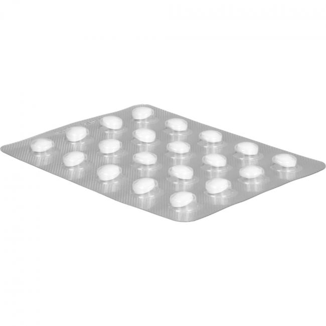 Weiße, runde Tabletten. Packung mit 100 Tabletten.