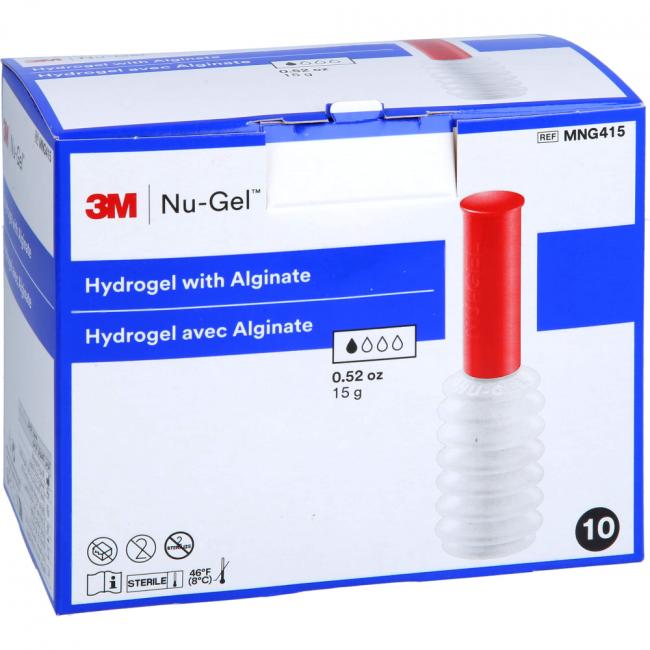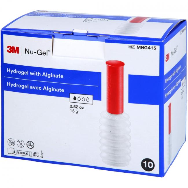 Ampulle zur leichten Anwendung. Die Alginatkomponente erhöht die Absorptionsfähigkeit. Längere Tragezeit im Vergleich zu anderen Hydrogelen. Das 3M(TM) Nu-Gel Hydrogel ist ein transparentes Gel mit Alginat, das für ein feuchtes Wundmilieu sorgt, wodurch die autolytische Wundreinigung und das Lösen von Schorf ermöglicht werden. Nu-Gel Hydrogel sorgt für ein feuchtes Wundmilieu, welches die natürliche autolytische Wundreinigung unterstützt, während die Alginatkomponente die absorbierenden Eigenschaften verstärkt. Das Gel kann zum Einweichen und Hydratisieren von Schorf verwendet werden, indem es eine Hydratisierung der Wunde ermöglicht.