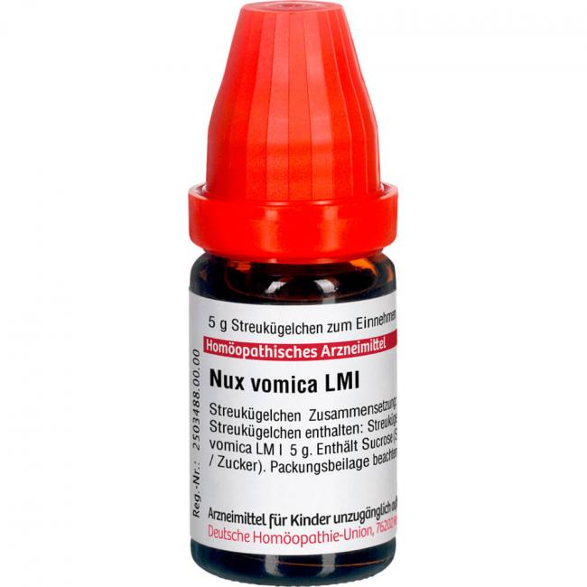 LM Nux Vomica I. Anwendungsgebiete: Registriertes homöopathisches Arzneimittel, daher ohne Angabe einer therapeutischen Indikation. Warnhinweis: Dieses Arzneimittel enthält Sucrose (Saccharose / Zucker).