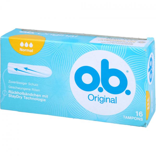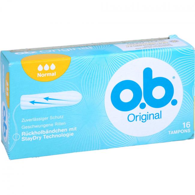 o.b. Original Normal ist unser Klassiker bei mittlerer bis stärkerer Periode. Mit geschwungenen Rillen sorgt er für zuverlässigen Schutz und durch die StayDry Technologie bleibt auch das Rückholbändchen trocken.