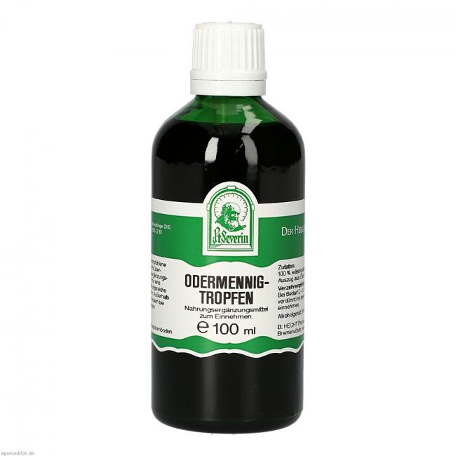 Odermennigtropfen enthalten einen hochwertigen wässrig/alkoholischen Auszug aus Odermennigkraut. Der Auszug wird nach Vorgaben des Arzneibuches im Verhältnis 1:5 hergestellt. Alkoholgehalt: 66% Vol.