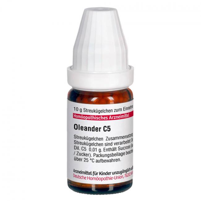 Oleander C 5. Anwendungsgebiete: Registriertes homöopathisches Arzneimittel, daher ohne Angabe einer therapeutischen Indikation. Warnhinweis: Dieses Arzneimittel enthält Sucrose (Saccharose / Zucker).