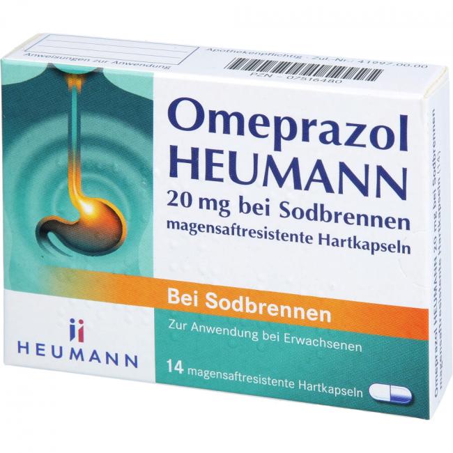 Pflichtangaben OMEPRAZOL Heumann 20 mg b.Sodbr.magensaftr.Hartk., 14 Stück