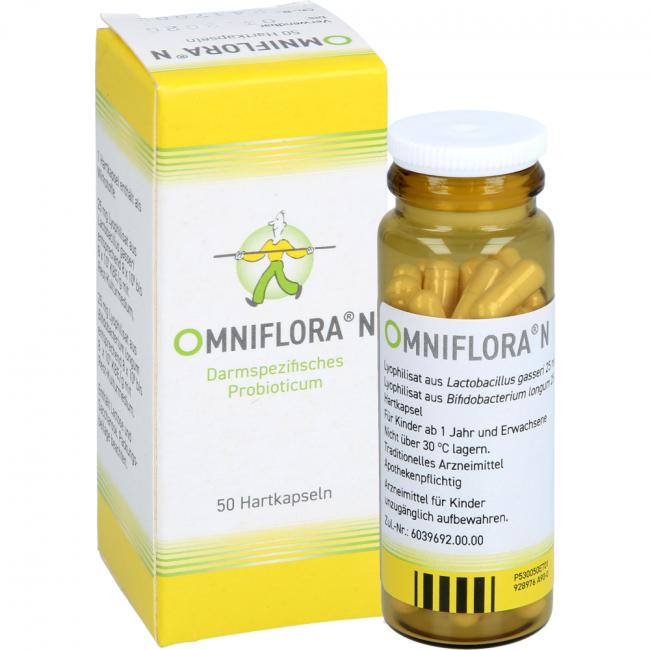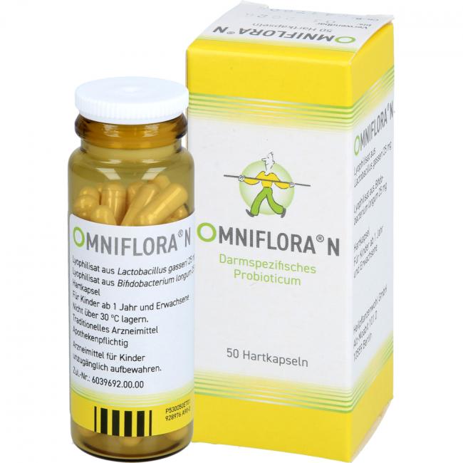 Omniflora N Hartkapseln. Anwendungsgebiete: mild wirksames Arzneimittel zur Unterstützung der Darmfunktion, z.B. bei Darmträgheit und Durchfall.