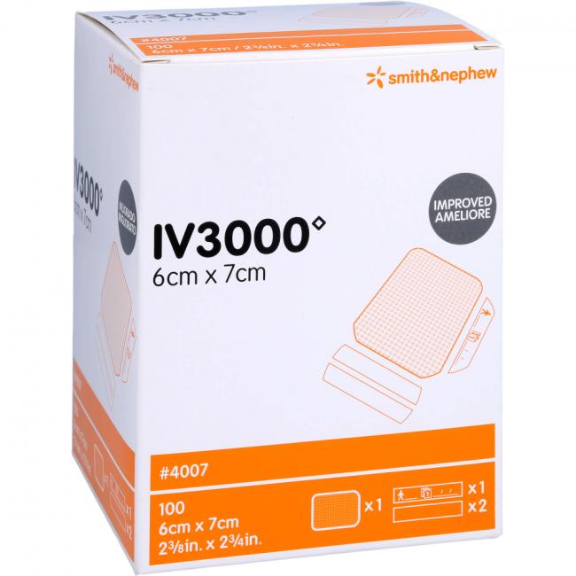 IV3000 ist ein bakteriendichter Verband (auch gegenüber MRSA) zur Kanülen- und Katheterfixierung. Durch die wasserdichte Folie des Verbandes kann der Patient jederzeit Duschen. Die Transparenz der Folie ermöglicht jederzeit eine Kontrolle der Einstichstelle, ohne den Verband zu entfernen. Die hohe Wasserdampfdurchlässigkeit von IV3000 hält die Punktionsstelle trockener als andere Folienverbände. Zwei zusätzliche sterile Fixierstreifen ermöglichen eine besonders sichere Fixierung des Katheters. IV3000 minimiert Kathetermanipulation und -dislokation und hilft so das Risiko von Phlebitis und assoziierten Infektionen zu reduzieren. Das Dokumentationsetikett hilft bei einer schnellen Dokumentation bei der Verbandanlage. Der besonders hautfreundliche Kleber, der rasterförmig aufgetragen ist, sorgt für schmerzarme Verbandwechsel und verringert das Risiko von Hautirritationen.