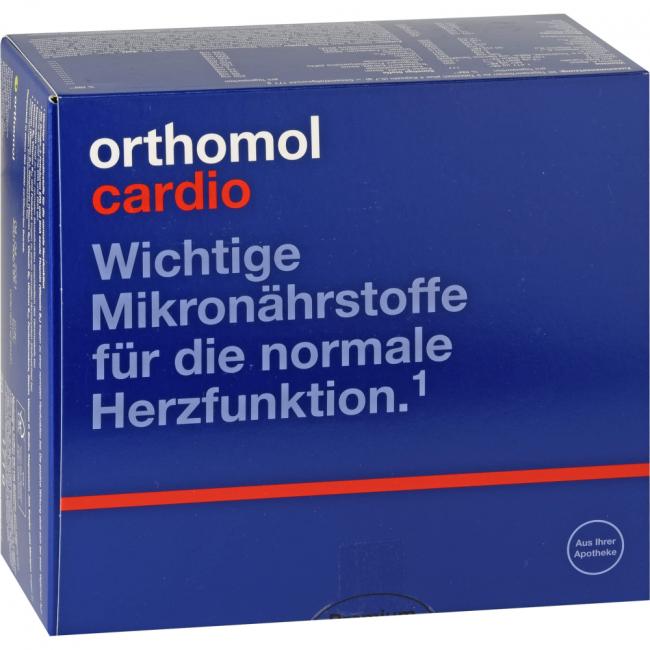 Orthomol Cardio ist ein Nahrungsergänzungsmittel. Wichtige Mikronährstoffe für die normale Herzmuskelfunktion, sowie einen normalen Energie- und Homocystein-Stoffwechsel. Täglich den Inhalt eines Beutels (= Tagesportion) vorzugsweise einzeln mit viel Flüssigkeit zu oder nach einer Mahlzeit einnehmen. Die Tabletten und Kapseln können auch in beliebiger Reihenfolge über den Tag verteilt eingenommen werden. Mikronährstoffe werden täglich vom Körper gebraucht, eine regelmäßige Verwendung über einen längeren Zeitraum ist daher empfehlenswert.