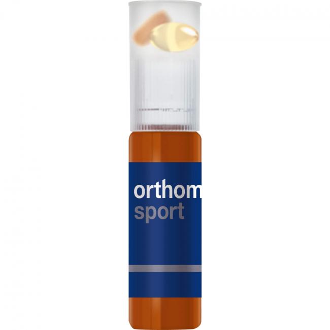 - Durch die Einnahme von Orthomol Sport können folgende harmlose Begleiterscheinungen auftreten: Eine Gelbfärbung des Urins, bedingt durch den Gehalt an Vitamin B2, sowie im Einzelfall ein leichtes Aufstoßen, bedingt durch das in der Kapsel enthaltene Fischöl (Omega–3–Fettsäuren). Um das Aufstoßen zu vermeiden, empfiehlt es sich, die Kapsel vor dem Schlafengehen einzunehmen.