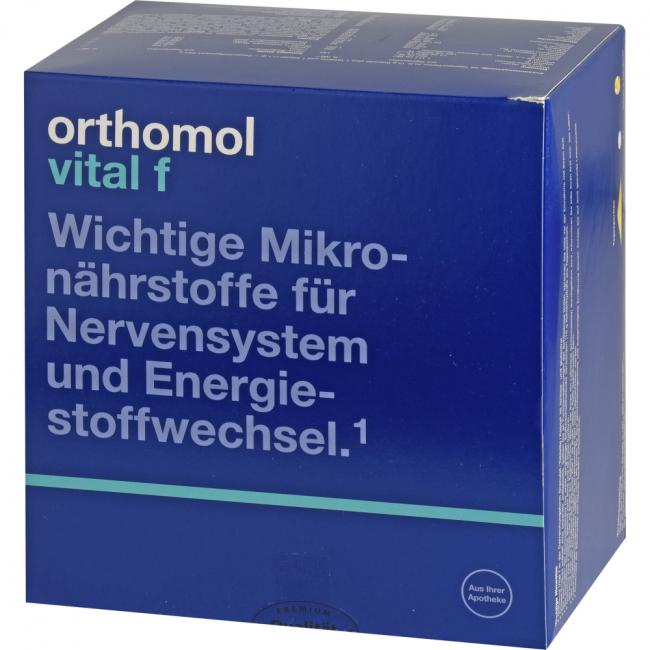 Orthomol Vital f ist ein Nahrungsergänzungsmittel. Wichtige Mikronährstoffe für Nervensystem und Energiestoffwechsel. Täglich den Inhalt eines Beutels (= Tagesportion) in ca. 150 - 200 ml stilles Wasser oder Fruchtsaft einrühren und zu oder nach einer Mahlzeit zusammen mit der Jodtablette und der Kapsel einnehmen. Mikronährstoffe werden täglich vom Körper gebraucht, eine regelmäßige Verwendung über einen längeren Zeitraum ist daher empfehlenswert.