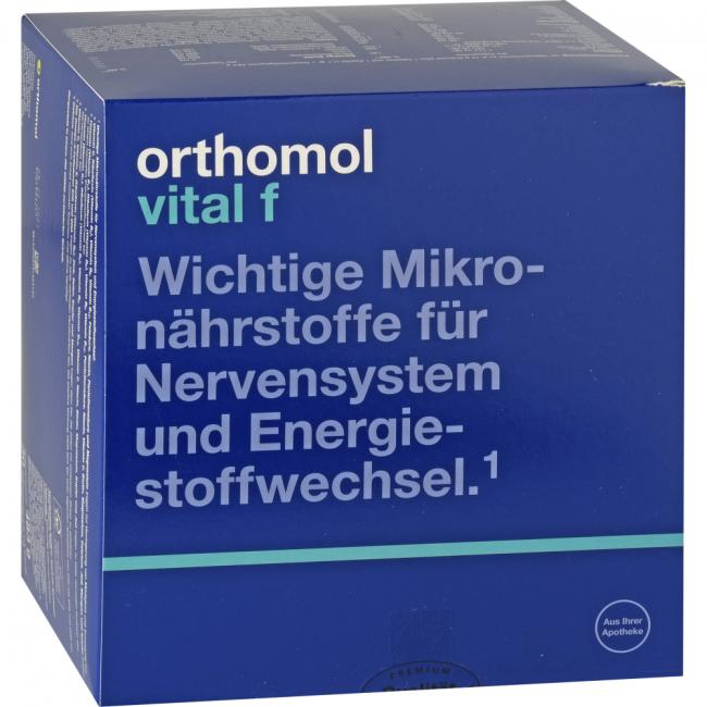 - Orthomol Vital f in der Darreichungsform Granulat enthält Kohlenhydrate, bei Störungen der Glucosetoleranz nur unter sorgfältiger Stoffwechselkontrolle verwenden. Die enthaltenen Kohlenhydrate (10,4 g pro Tagesportion) sind leicht verfügbar.
