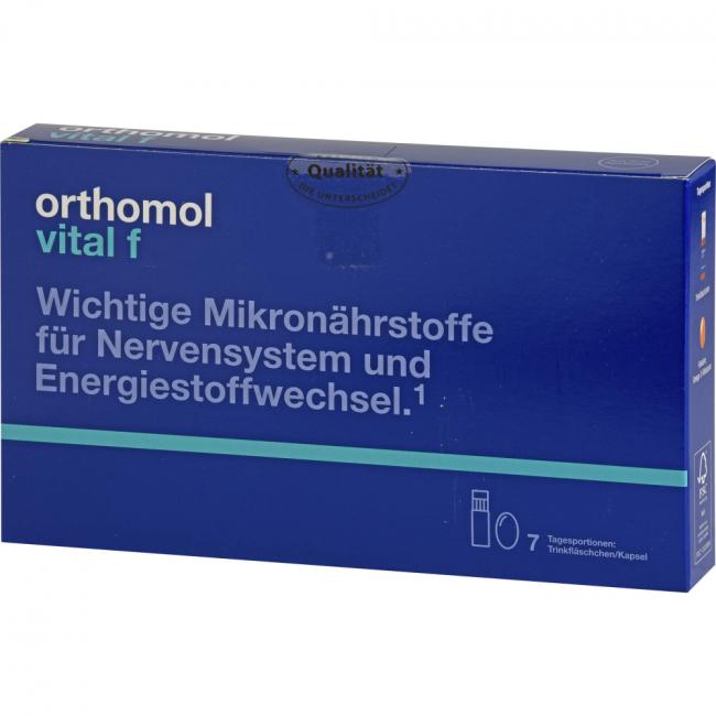 Pflichtangaben ORTHOMOL Vital F Trinkfläschchen/Kaps.Kombipack., 7 Stück