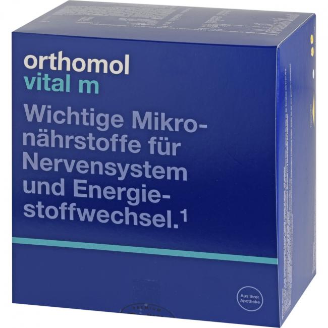- Orthomol Vital m in der Darreichungsform Granulat enthält Kohlenhydrate, bei Störungen der Glucosetoleranz nur unter sorgfältiger Stoffwechselkontrolle verwenden. Die enthaltenen Kohlenhydrate (11,3 g pro Tagesportion) sind leicht verfügbar.