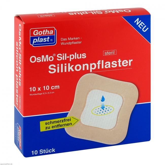 Pflichtangaben OSMO SIL-plus Silikonpflaster 10x10 cm steril, 10 Stück