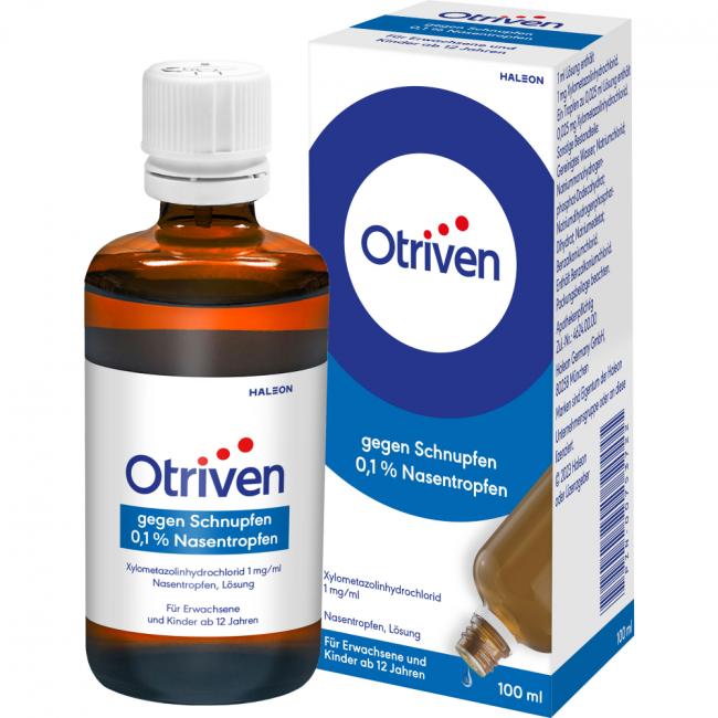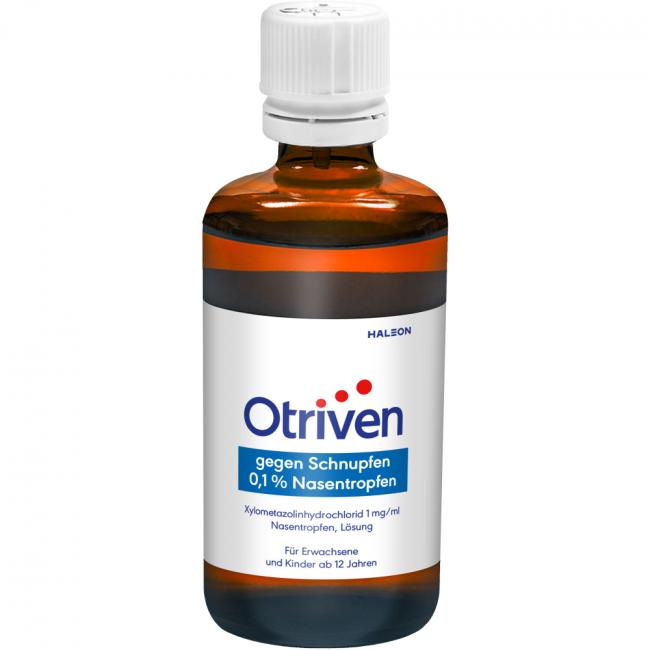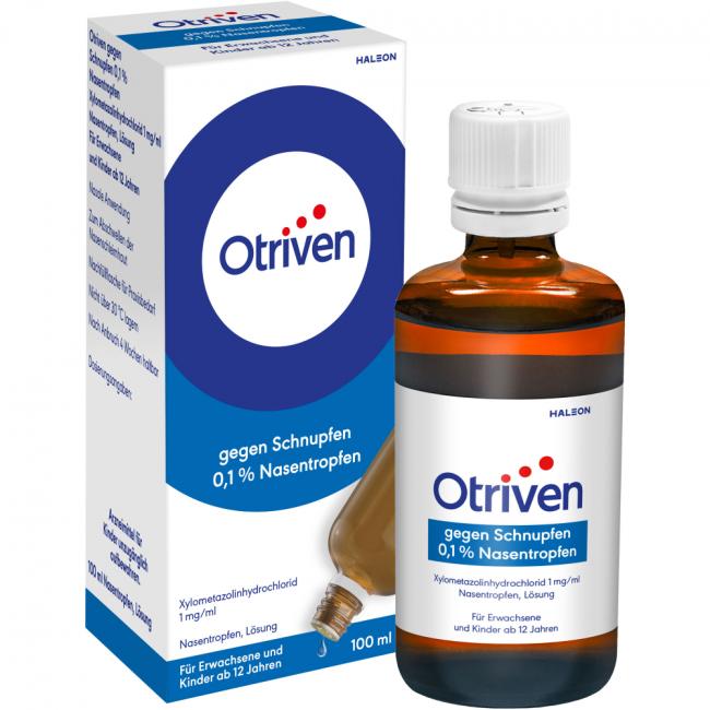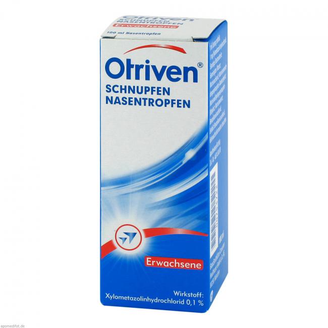 Otriven gegen Schnupfen 0,1% Nasentropfen ist ein Mittel zur Anwendung in der Nase (Rhinologikum) und enthält das Alpha-Sympathomimetikum Xylometazolin. Xylometazolin hat gefäßverengende Eigenschaften und bewirkt dadurch eine Schleimhautabschwellung. Anwendungsgebiete: Zur Abschwellung der Nasenschleimhaut bei Schnupfen, anfallsweise auftretendem Fließschnupfen (Rhinitis vasomotorica), allergischem Schnupfen (Rhinitis allergica), zur Erleichterung des Sekretabflusses bei Entzündungen der Nasennebenhöhlen sowie bei Katarrh des Tubenmittelohrs in Verbindung mit Schnupfen. Otriven gegen Schnupfen 0,1% Nasentropfen sind für Erwachsene und Schulkinder bestimmt.