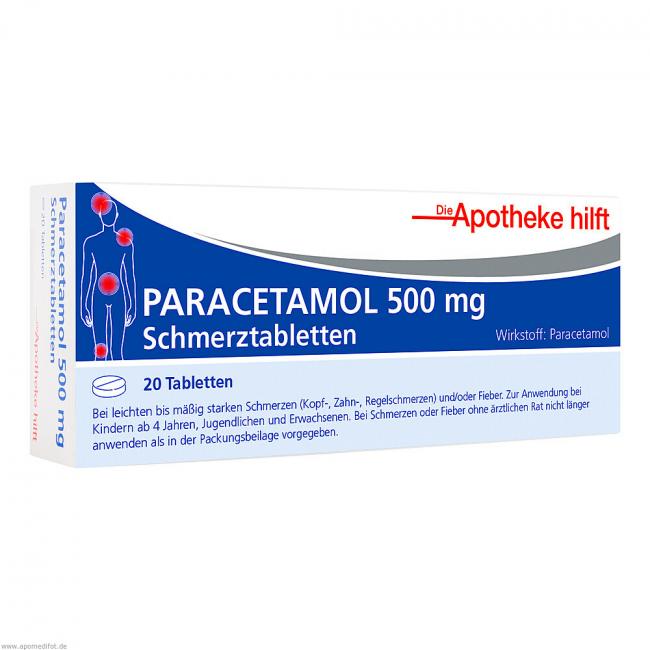 Pflichtangaben PARACETAMOL 500 mg Die Apotheke hilft Tabletten, 20 Stück